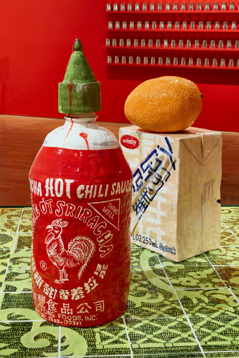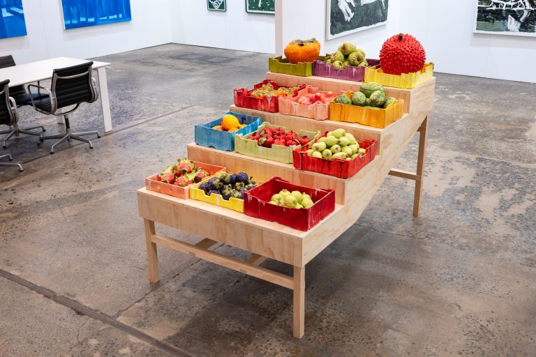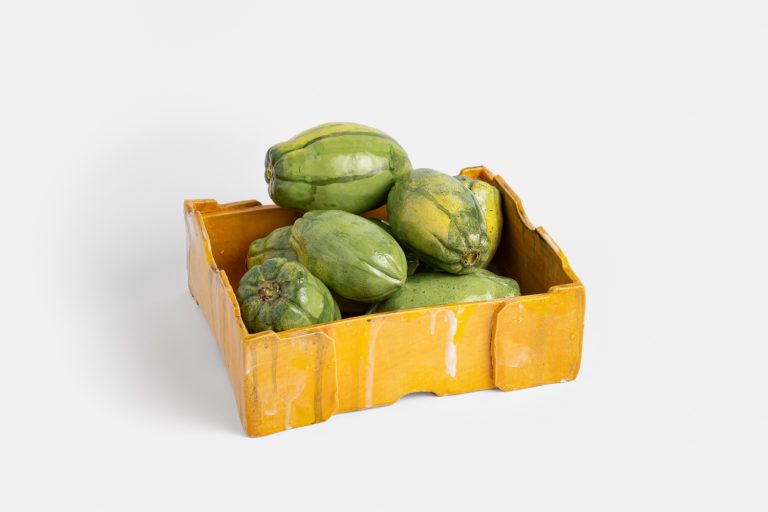 The subject of her sculptures are primarily domestic objects and scenarios — condiments, fruit boxes, quilted pillows, ointment bottles and paraphernalia — which bear witness to the minute reverences of everyday life. They are objects of care which are items of sustenance and comfort, yet also of a generational stuntedness of wanting to feel grief, of wanting to read between the gaps. Behind the tangible forms of her objects lies an uncoiling of quiet, yet understood labour.