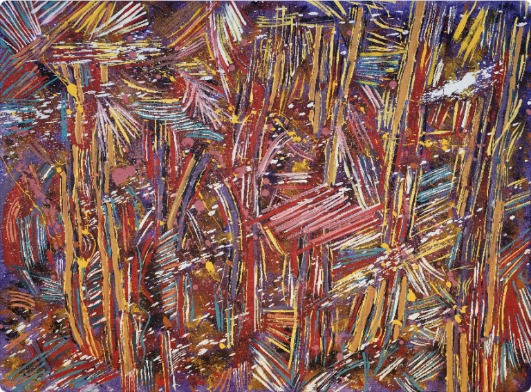 Her transion into visual arts is a natural progression, deeply rooted in cultural and family ties. Michelle descends from the Sandy, Pat, and Andrews families—custodians of knowledge and Country—and draws inspiration from her late mother and her “Gawarli” (mother’s aunty) Allery Sandy, both respected arsts born at Mount Florence Station (Yirranha).