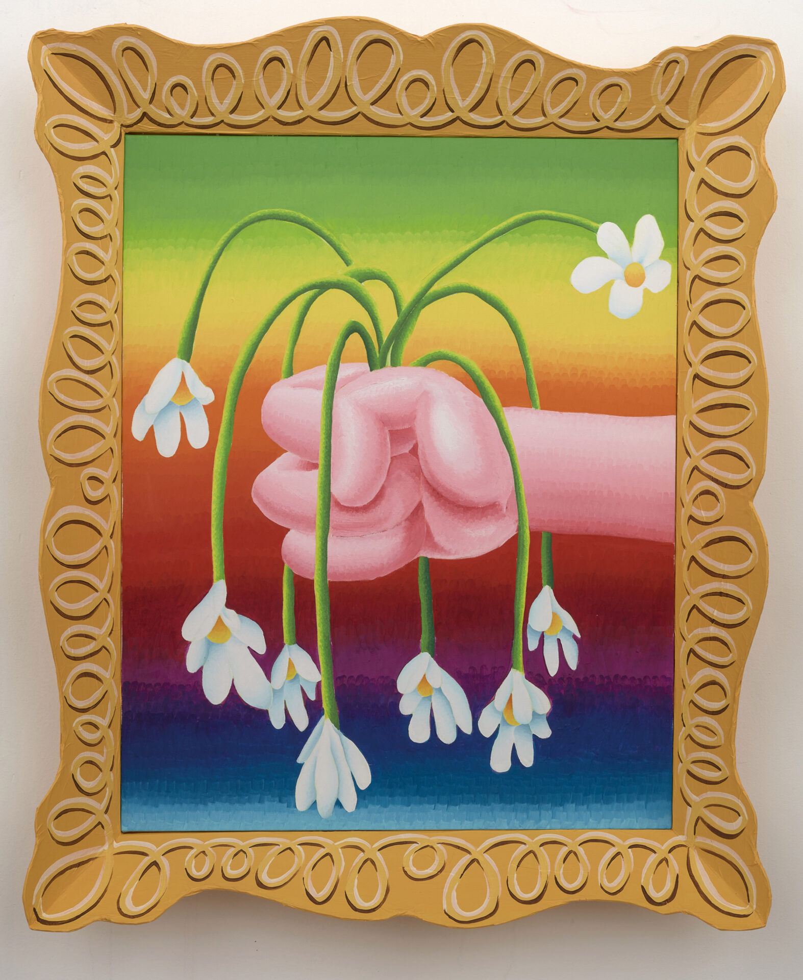 oil on canvas, synthetic polymer on handmade papier maché frame