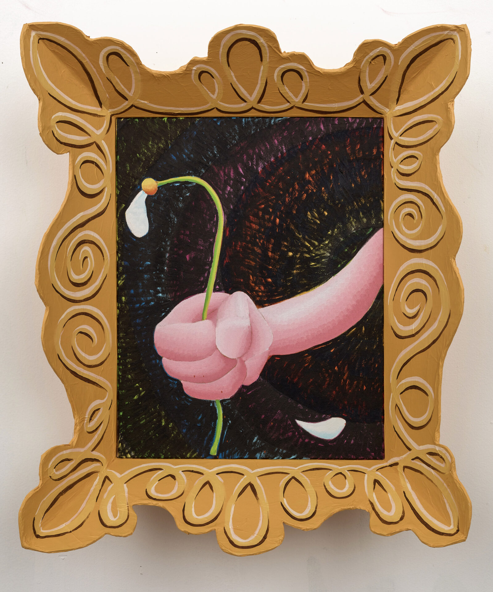 oil on canvas, synthetic polymer on handmade papier maché frame
