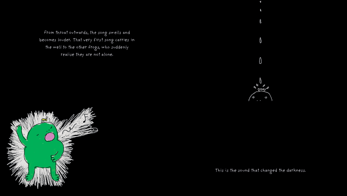 And so begins the tale of how frogs came to croak in chorus at night-time. Inspired by Chinese parables and First Nations Creation stories, this debut picture book is a unique and melodic ode to taking chances, using your voice and coming together in song and dance.